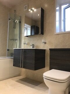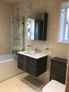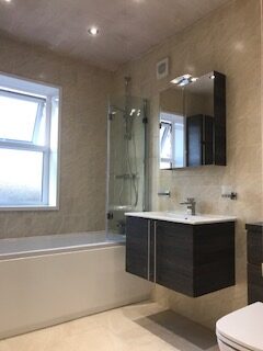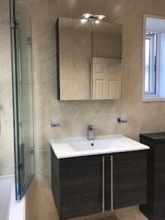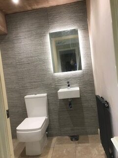 We offer tailored bathroom solutions, including new suites, refurbishments, en-suite or cloakroom installations. Services include floor and wall tiling, aqua boarding, electrical work (lighting, power showers), plastering (walls, ceilings, skimming), and decorating. Our goal is to deliver a bespoke bathroom that matches your vision.